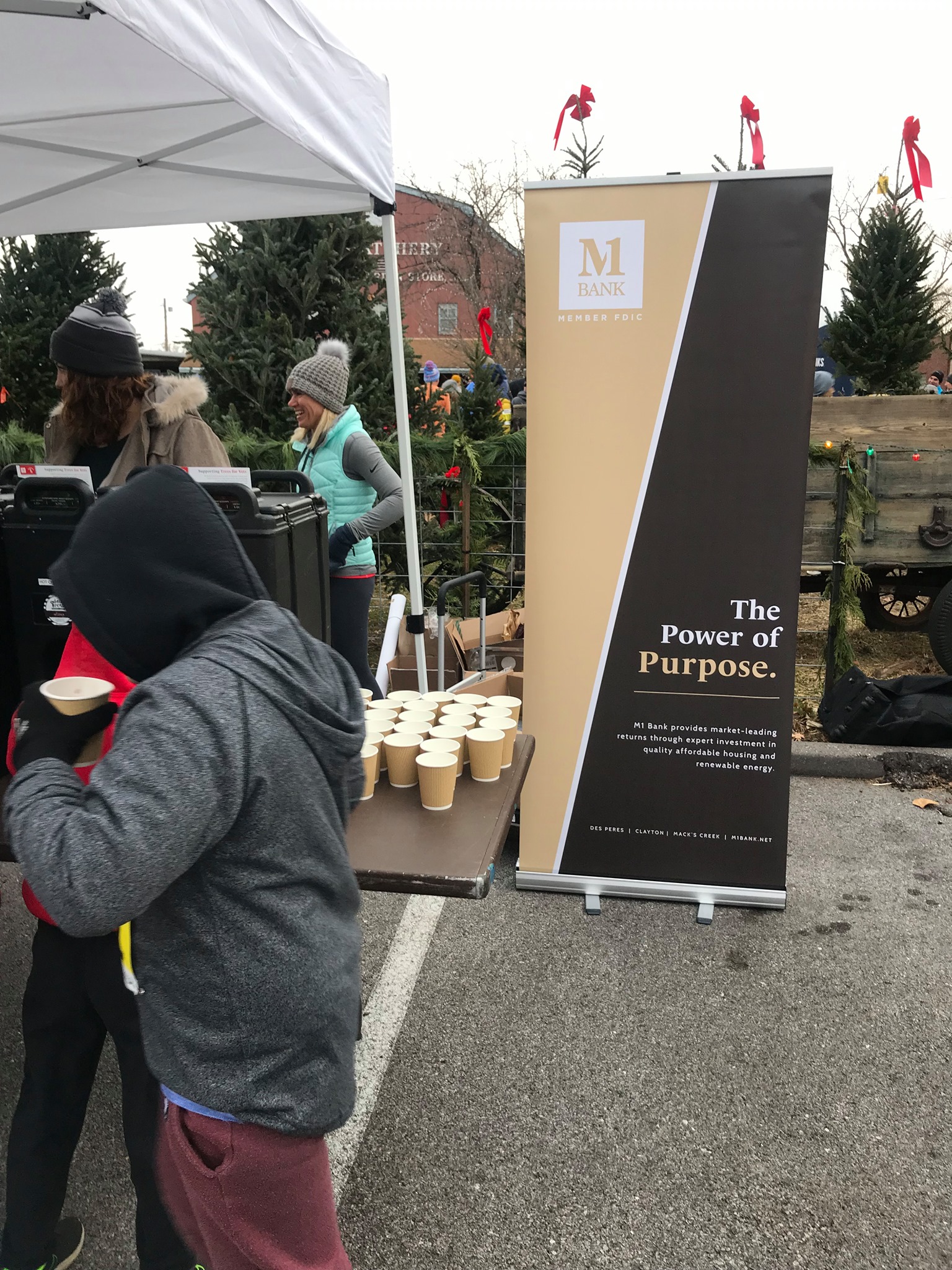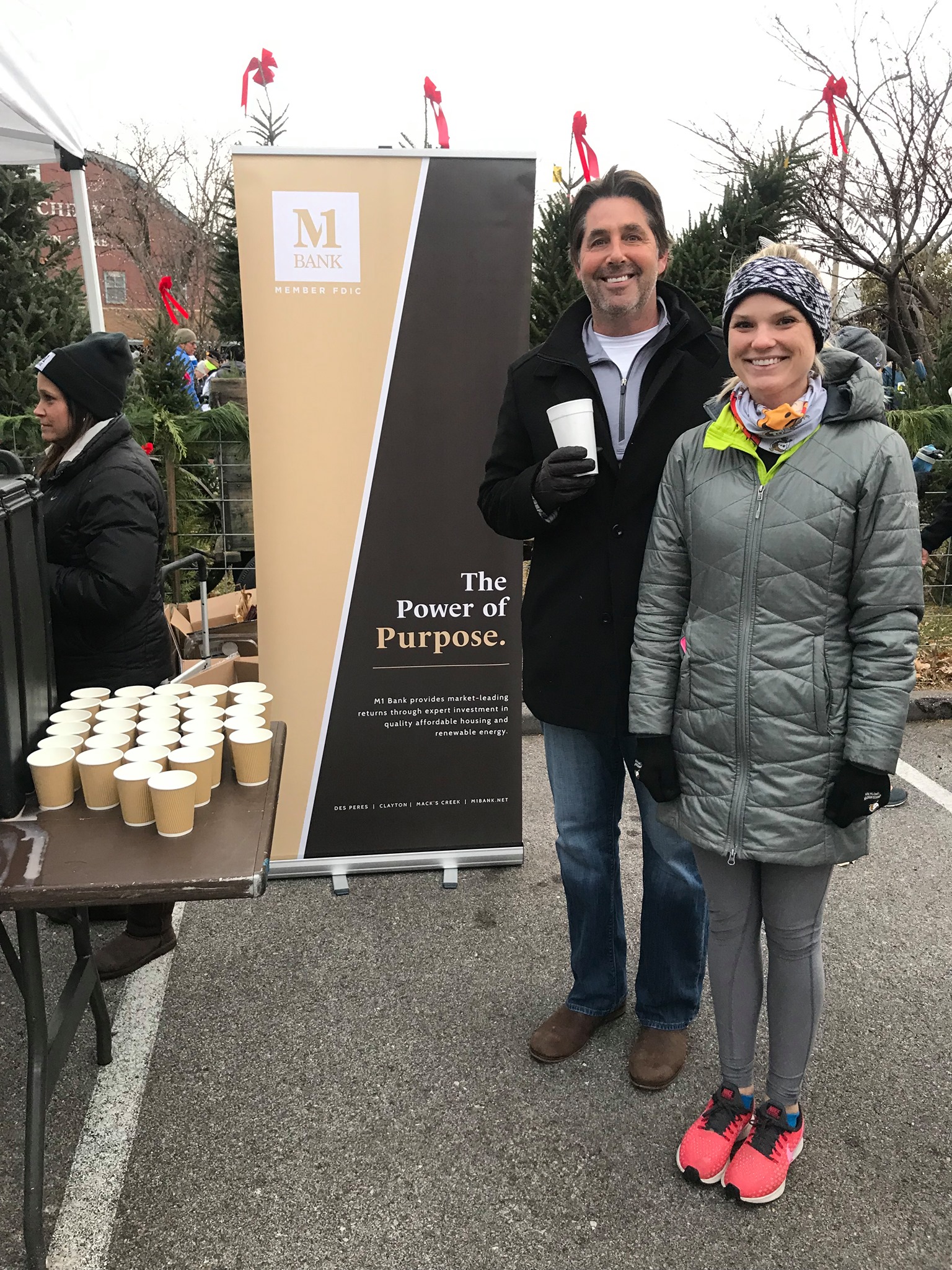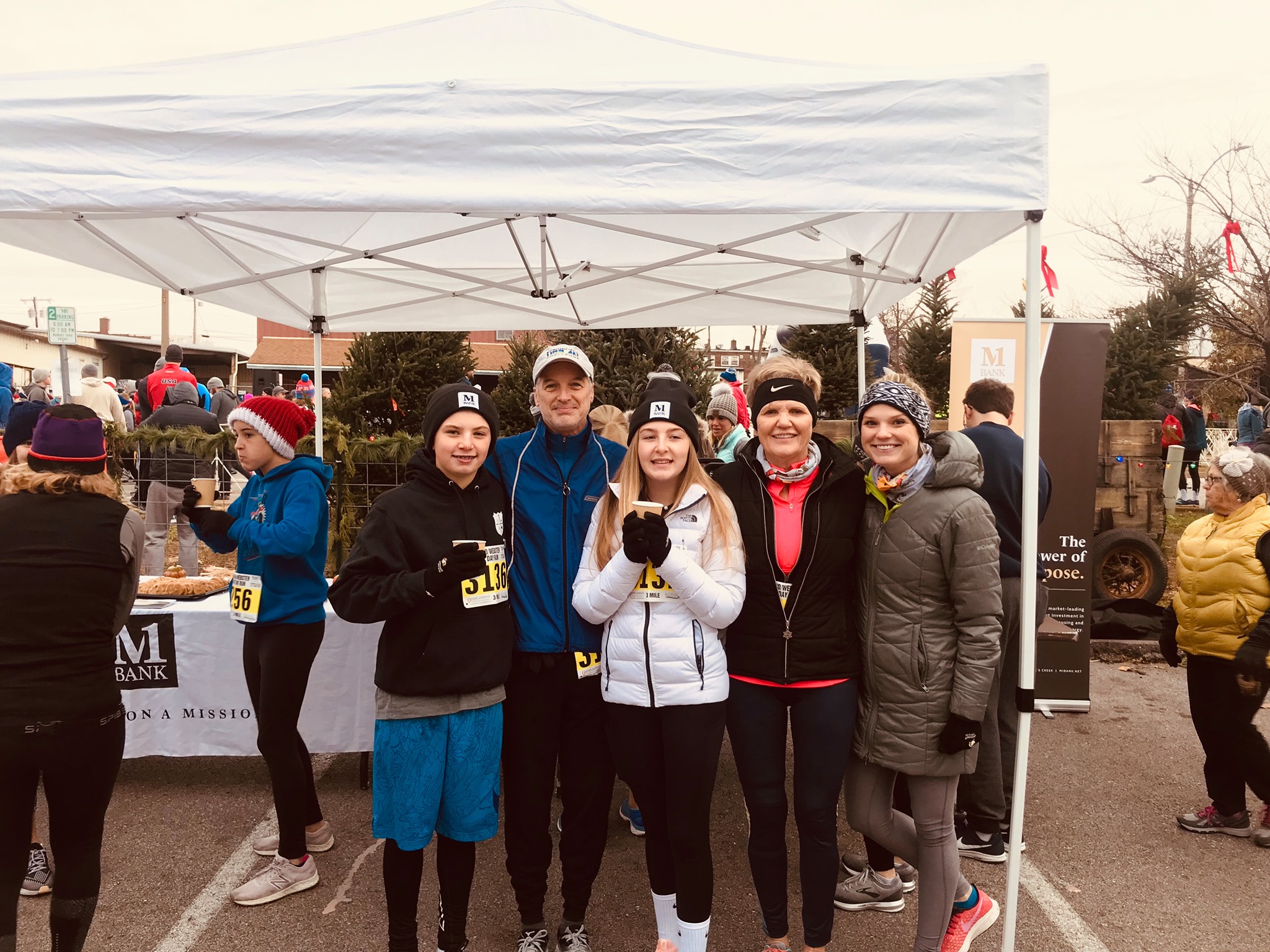 The M1 Bank team enjoyed every moment of their Thanksgiving morning helping keep runners at the 37th Annual Kirkwood Webster Turkey Day Run – a beloved tradition for many in our area – warm and fueled with hot cocoa and cookies.